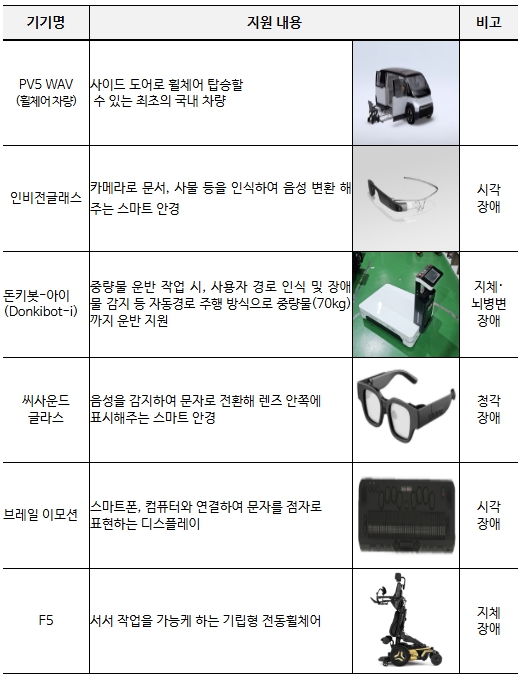 국·내외 49개의 업체가 참가한 이번 박람회는 시각장애(61점), 지체·뇌병변장애(82점), 청각장애(24점) 등 활용도가 높은 장애유형별 보조공학기기 총 200점을 소개하고 체험 기회를 제공한다. 카메라로 사물을 인식해 실시간 음성으로 변환해주는 스마트 안경(인비전 글래스) 등 인공지능(AI)과 음성·영상 인식 기술이 접목된 차세대 기기도 직접 확인할 수 있다.