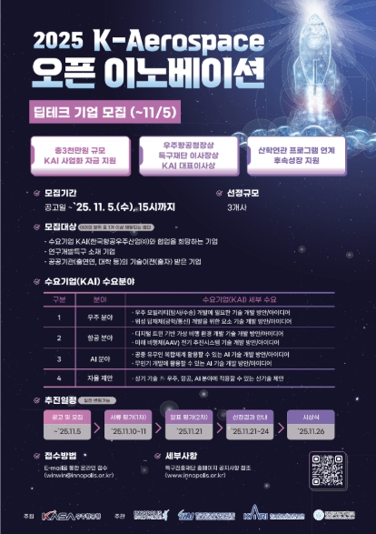 우주항공청, '2025 K-Aerospace 오픈 이노베이션'으로 우주·항공·AI 딥테크 기업 육성 추진
