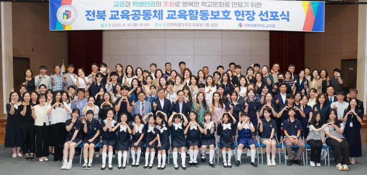 이날 선포식에는 서거석 교육감을 비롯해 학생·학부모·교원 및 교원단체 대표 등 130여 명이 참여해 교육활동보호 헌장 제정을 축하하고, 헌장을 성실하게 준수·실천할 것을 다짐했다.
