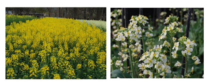 | ▲ 2024년 개발 유채 품종 ‘금별’(왼쪽)과 ‘백운’(오른쪽) |