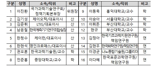 | ▲ 범용장비분과 총 16명(분과위원장 1명, 참여위원 15명) |
