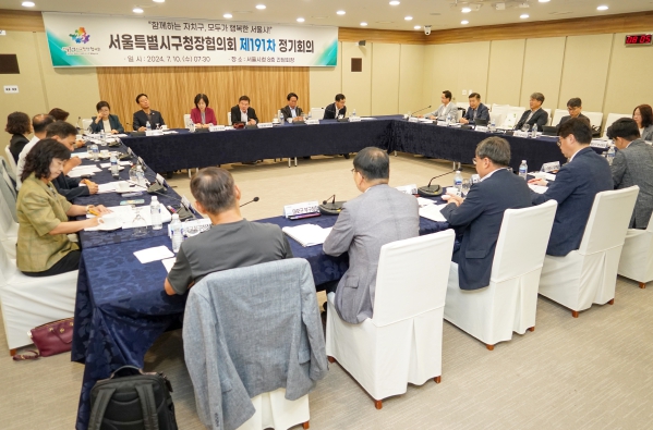 [뉴스서치] 서울특별시구청장협의회는 7월 10일 서울시청 8층 간담회장에서 민선8기 3차년도의 첫 번째 회의인 제191차 정기회의를 개최했다.