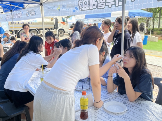 1부는 14~16시까지 타투 스티커와 비치백 만들기, 물풍선 던지기, 워터스테이션, 포토존 등 여름을 주제로 다채로운 체험에는 청소년과 지역주민 240명이 참여해 즐겼다.