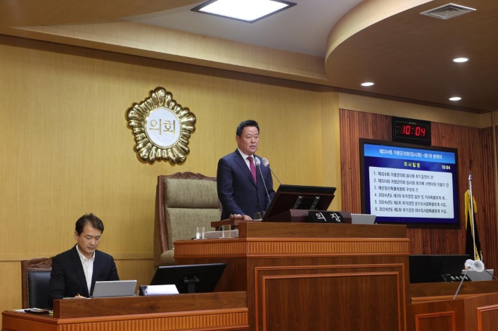 이번 임시회는 제9대 후반기 의장단 선출 후 처음 개회하는 회기로 가평군의회는 『2024년도 제2회 추가경정 예산안, 조례안, 동의안』 등을 다룬다.