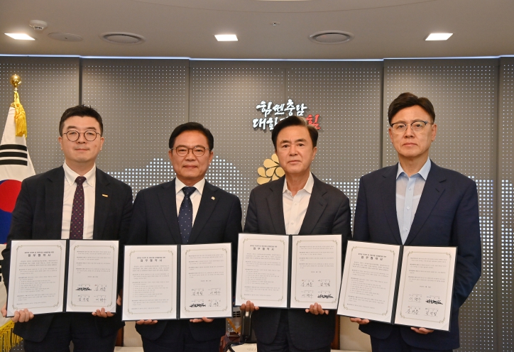 김태흠 지사는 23일 도청 접견실에서 김석필 천안시장권한대행, 이명수 오송첨단의료산업진흥재단 이사장, 황동훈 (재)원주의료기기산업진흥원 전략기획실장과 ‘치의학과 의료기기 산업 간 연계를 통한 전주기 협력체계 구축 업무협약’을 체결했다.