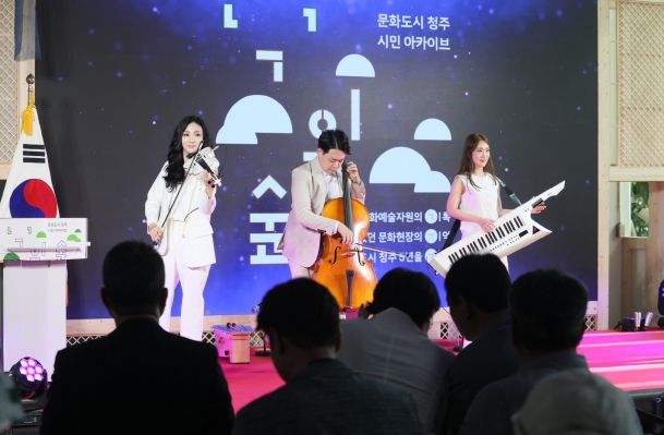 이범석 청주시장과 김병국 청주시의회 의장을 비롯해 지역예술인과 시민 등이 참석한 가운데 블루윈드 앙상블의 무대로 막을 연 이날 개막식은 ‘ㄱ의 숲’이 담아낸 청주의 문화예술자원과 법정문화도시 청주의 5년을 함께 돌아보는 시간이었다.