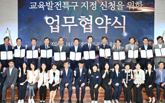 경산시는 14일 11시 경북교육청 웅비관에서 경북도교육청과 ‘교육발전특구 시범지역 지정 2차 신청을 위한 업무협약’을 체결했다.