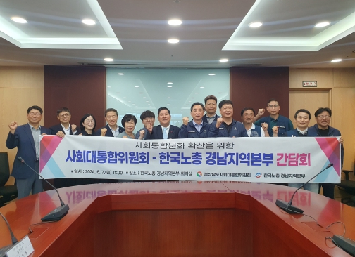 [뉴스서치] 경상남도 사회대통합위원회는 7일 한국노동조합총연맹 경남지역본부를 방문해 정진용 의장을 비롯한 주요 간부들을 만나 소통했다.