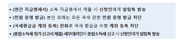 이 밖에도 명의도용으로 인한 피해가 예상되는 국세행정 업무에 대해 다음과 같은 서비스를 시행한다.