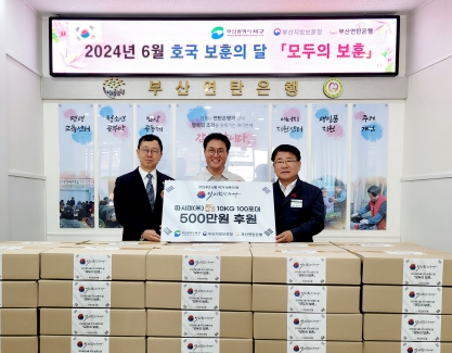 [뉴스서치] (사)부산연탄은행은 6월 ‘호국보훈의 달’을 맞아 지난 18일 국가를 위해 헌신한 보훈대상자 지원을 위해 부산 서구에 500만 원 상담의 유기농 백미 100포를 전달했다.