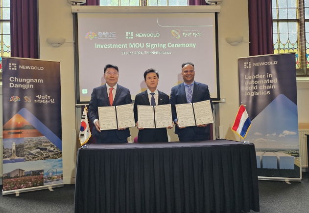[뉴스서치] 당진시와 충남도는 세계 굴지의 냉동‧냉장 유통 물류기업인 뉴콜드 사와 13일 네덜란드 호벤에서 당진시 송악읍에 조성 중인 물류단지 내 1억 5천만 달러(한화 약 2,020억 원) 규모의 합동 투자협약을 체결했다.