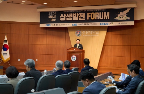 [뉴스서치] 박경귀 아산시장이 21일 선문대학교에서 열린 ‘2024 아산시-대학 상생포럼’에서 지역대학과의 상생 협력을 통해 지방소멸 위기와 학령인구 감소에 따른 대학 위기에 대응해 나가겠다고 밝혔다.