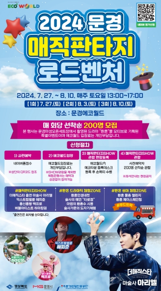 [뉴스서치] 문경시는 오는 7월 27일부터 8월 3일, 8월 10일 총 3회에 걸쳐 문화 콘텐츠 테마파크인 문경 에코월드에서 '2024 문경 매직판타지 로드벤처'를 개최한다.