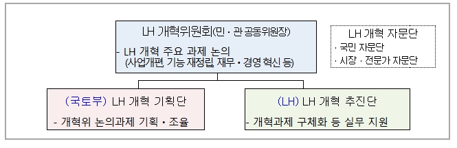 한편, 개혁위원회의 활동을 뒷받침하기 위해 국토부에 LH 개혁 기획단을, LH에는 LH 개혁 추진단을 각각 설치·운영한다.