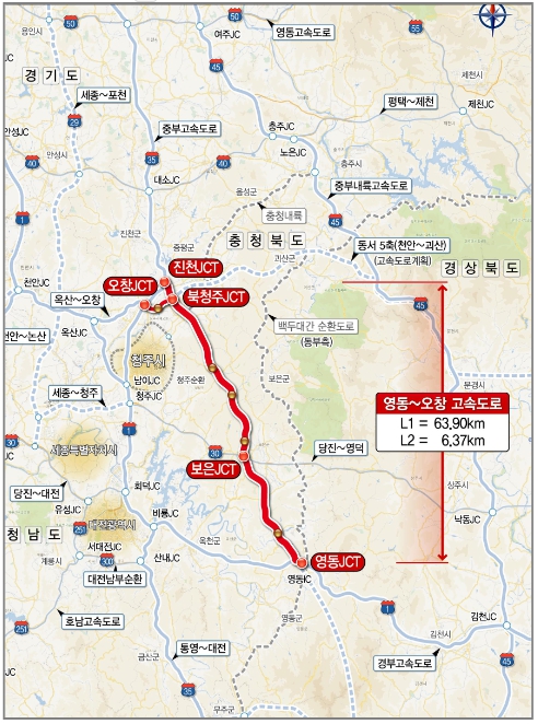 본 사업은 충청북도 영동군에서 진천군(본선) 및 청주시 오창읍(지선)까지 연결하는 약 70.3km에 해당하는 고속도로로, ’22년 2월 민간투자사업으로 국토부에 제안된 사업이다.