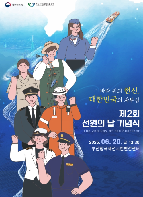 [뉴스서치] 해양수산부는 6월 20일 오후 1시 30분부터 부산 부산항국제컨벤션센터에서 ‘바다 위의 헌신, 대한민국의 자부심’이라는 주제로 ‘제2회 선원의 날’ 기념식을 개최한다고 밝혔다.