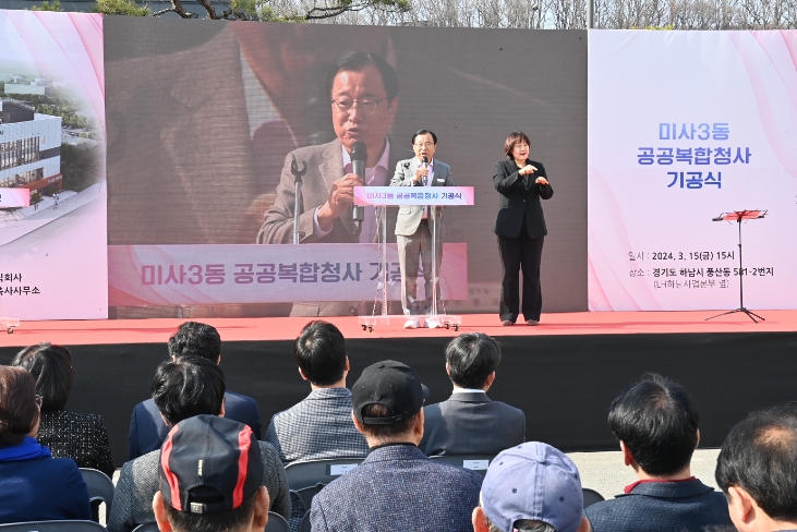 [뉴스서치] 하남시는 15일 미사지구 내 공공청사9 부지(풍산동 581-2번지 일원)에서 미사3동 공공복합청사 건립 기공식을 개최했다.
