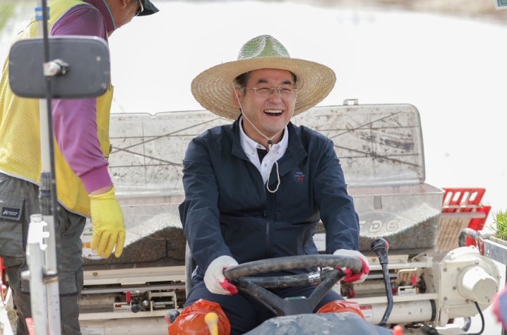 ▲ 이앙기를 이용해 모내기 시연 중인 이동환 고양특례시장 |