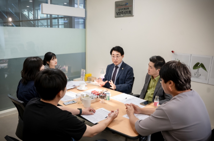 첫째 날인 지난 12일, 조성대 의장은 별내동에 위치한 전국자치단체 공무직 본부 경기지역지부 남양주시지회에 방문해 정지매 남양주시지부장을 비롯한 공무직 노조 임원진들과 간담회를 가졌다.
