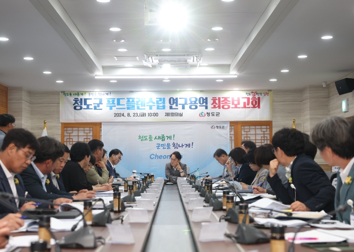 [뉴스서치] 청도군은 23일 군청 제1회의실에서 지역 사회의 건강을 증진하고 지속 가능한 먹거리 시스템을 구축하기 위한 ‘청도군 푸드플랜 수립 연구용역 최종보고회’를 개최했다.