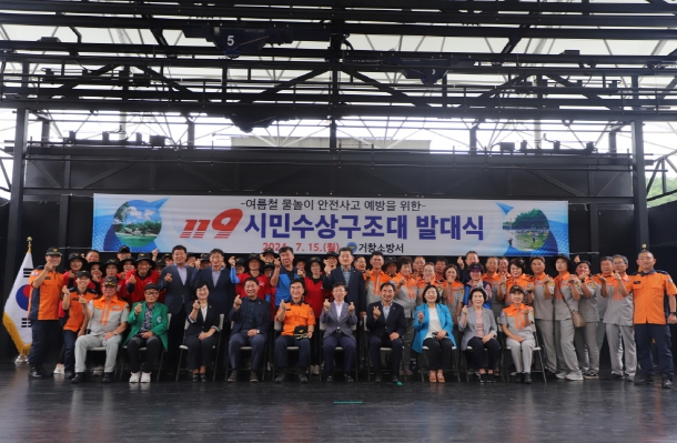 119시민수상구조대는 26명으로 구성되어 내달 23일까지 운영되며, 물놀이 관광객이 몰릴 것으로 예상되는 수승대 관광지 일원에서 안전한 물놀이 환경을 조성하고 수난사고 발생 시 신속히 대응하는 임무를 맡는다.
