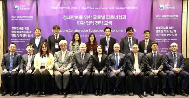 [뉴스서치] 외교부 경제안보외교센터는 11월 29일 '경제안보를 위한 글로벌 파트너십과 민관 협력 전략 모색'을 주제로 '제6차 경제안보 외교포럼'을 개최했다. 경제안보 관련 민관 소통 강화를 위해 반기마다 개최되는 이번 포럼에는 정부, 기업, 주한외교단, 일본·독일·네덜란드·싱가포르 등 국내외 주요 싱크탱크에서 90여 명이 참석했으며, 특히 조태열 외교장관이 취임 이래 면담과 간담회를 통해 소통해온 7개 경제단체에서도 자리를 함께했다.