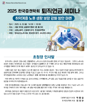 이번 세미나에서는 취약계층의 안정된 노후를 보장하고 지속 가능한 노후 소득 체계를 구축하기 위한 다양한 퇴직연금 제도 개선 방안이 논의됐다.