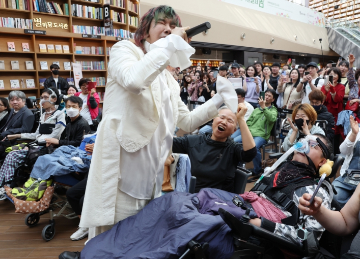 [뉴스서치] 꿈이 모이는 도시, 미래를 그리는 강남구(구청장 조성명)의 코엑스 별마당도서관에서 19일 중증장애인을 위한 ‘김장훈의 누워서 보는 콘서트’가 열렸다.
