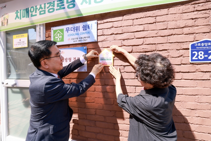 이날 현판식에는 문헌일 구로구청장, 문영신 구로보건소장, 함태호 대한노인회 구로구지회 회장, 지역주민 등이 참석해 치매 안심경로당 현판을 달고 어르신들과 소통의 시간을 가졌다.