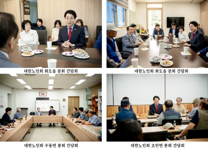 이날 화도읍과 수동면, 조안면의 대한노인회 분회를 방문한 조성대 의장은 각 지역의 분회장들을 만나 간담회를 통해 어르신들의 권익신장을 위한 방안에 대해 논의하고 경로당 운영, 노인 일자리 사업 등 노인회 운영과 관련된 현안과 건의사항을 경청하는 시간을 가졌다.