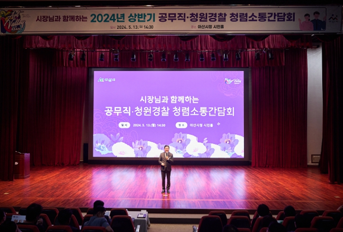 [뉴스서치] 아산시가 13일 시청 시민홀에서 공무직과 청원경찰 150여 명이 참석한 가운데 청렴에 대한 인식개선과 내부청렴체감도 향상을 위한 공무직·청원경찰 청렴소통간담회를 개최했다.