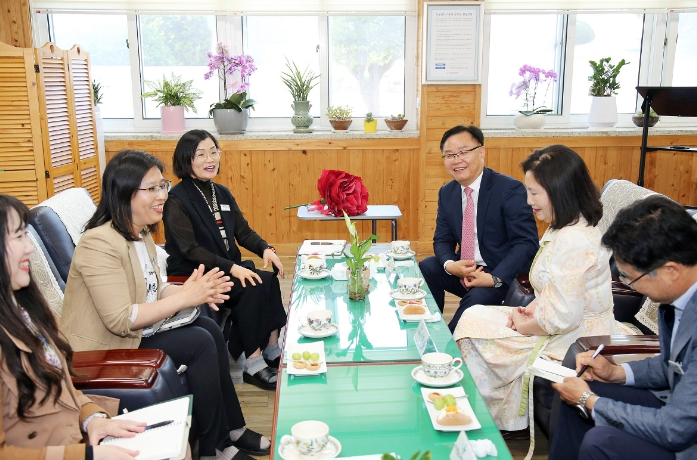 이날 홍 시장은 차유미 교장 선생님과 교정을 함께 거닐며 학교 현장과 직접 소통하고 의견을 듣는 특별한 시간도 가졌다.