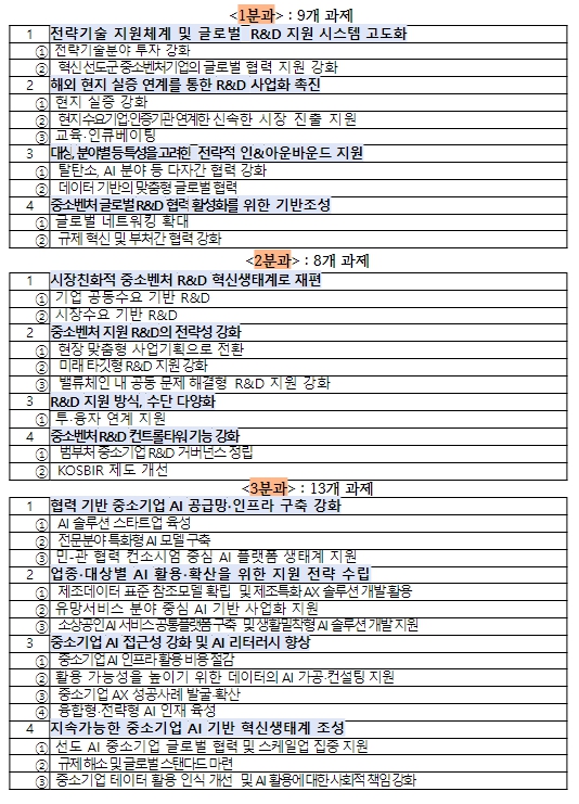 첫째로, 중소벤처 기술개발(R&D)의 역할을 혁신형 강소기업 육성에 집중하고, 전략기술 분야에 대한 혁신‧도전 기술개발(R&D)을 확대한다.