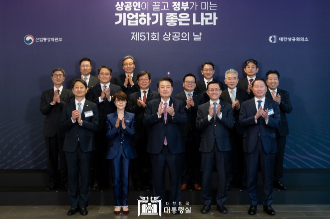 | ▲ 0일 윤석열 대통령은 서울 여의도 63컨벤션센터에서 개최된 ‘제51회 상공의 날 기념식’ 행사에 참석해 우리나라 경제발전의 주역인 20만 상공인들의 노고를 격려했다. |