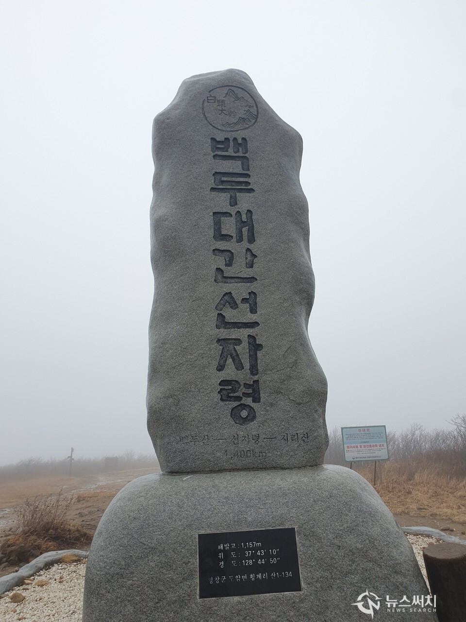 백두대간선자령 정상 표지석. ‘선자령(仙子嶺)’은 백두대간 중심부에 위치한 봉우리로 해발 1,157m 높이로 겨울철에는 매우 강한 바람이 부는 지역이자 많은 눈이 내리는 곳으로 유명하다. 선자령 정상에는 “백두대간선자령”이라는 거대한 정상 표지석이 자리잡고 있다.