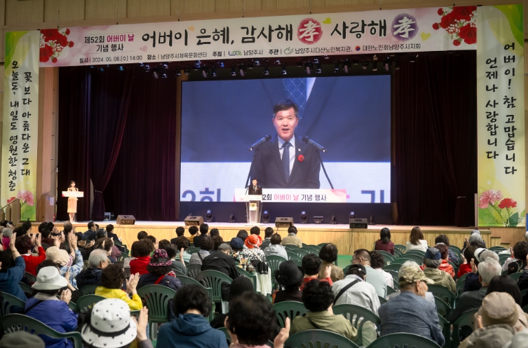 [뉴스서치] 남양주시의회는 지난 8일 남양주체육문화센터에서 열린‘제52회 어버이날 기념행사’에 참석해 어버이의 은혜를 기리고, 지역사회의 발전에 기여한 어르신들께 감사의 마음을 전하는 뜻깊은 시간을 가졌다.