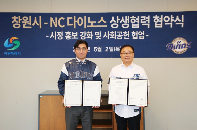협약식에는 홍남표 창원특례시장, 이진만 NC 다이노스 대표이사 등이 참석했으며, 이번 협약으로 시는 NC 다이노스와 시정홍보 마케팅 개발 등 홍보 협력을 통해 시민 소통을 강화하고, 사회공헌 활동 협업으로 시민 스포츠 관람 기회를 확대할 수 있게 됐다.