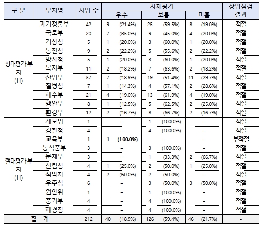 국가연구개발사업 중간평가는 전략계획서상 평가시기가 도래한 사업에 대해 소관부처가 자체평가하고 과학기술혁신본부가 성과의 우수성 및 사업 추진과정의 적절성 등을 상위점검 하는 것으로, 금년도는 22개 부처 212개 사업을 대상으로 실시했다.