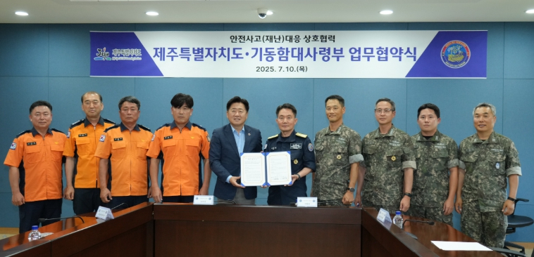 [뉴스서치] 제주특별자치도와 해군 기동함대사령부가 재난대응 협력체계 강화를 위한 업무협약을 체결하며, 육상과 수중 재난에 대한 공동 대응 기반을 구축했다.