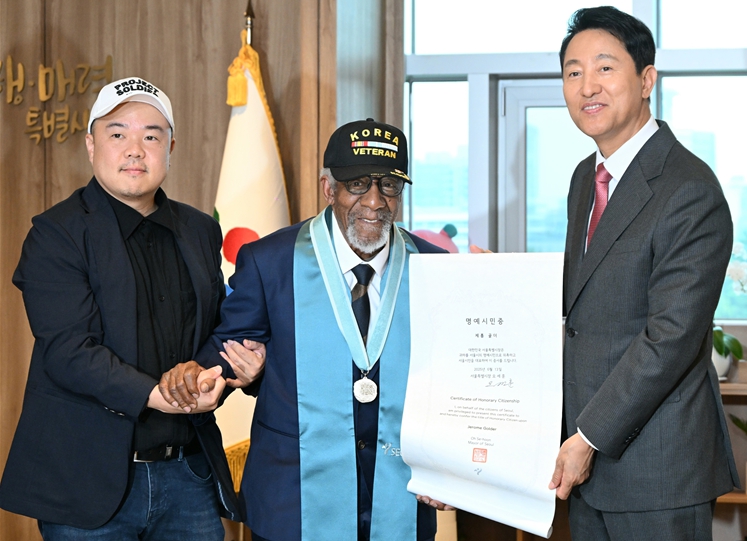 한국전쟁 참전용사를 대표하여 명예시민이 돼 기쁘다고 말한 제롬 골더에게 오 시장은 “한국전쟁 이후 첫 해외 나들이로 젊은 시절 도와주었던 대한민국을 찾아주셔서 무척 감동스럽고 영광”이라며 “서울시 명예시민이 되신 것을 축하드리고 서울시민을 대신해 무한한 감사를 표한다”고 답했다.