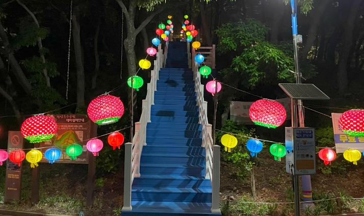 선암호수공원 테마쉼터 안민사를 비롯한 산책로 일원에 설치된 연등은 1일부터 오는 21일까지 형형색색의 아름다운 빛으로 매일 오후6시부터 11시까지 환하게 비춰 방문객들에게 다양한 볼거리를 제공할 것으로 기대된다.