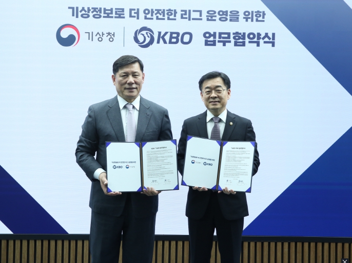 [뉴스서치] KBO(총재 허구연)와 기상청(청장 장동언)은 3월 7일(금) KBO 스튜디오에서 업무협약(MOU)을 체결했다.