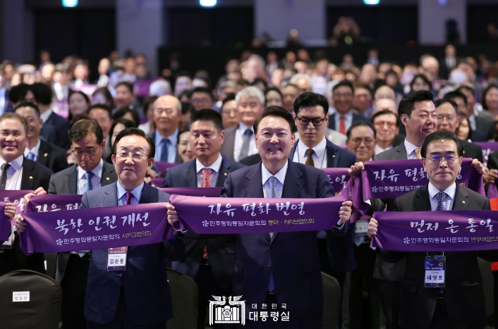▲ 9월 10일 윤석열 대통령은 서울 그랜드 워커힐 호텔에서 개최된 민주평화통일자문회의(이하 민주평통) 해외지역회의(미주)에 참석해 「미주지역 자문위원과의 통일대화」를 함께했다. |