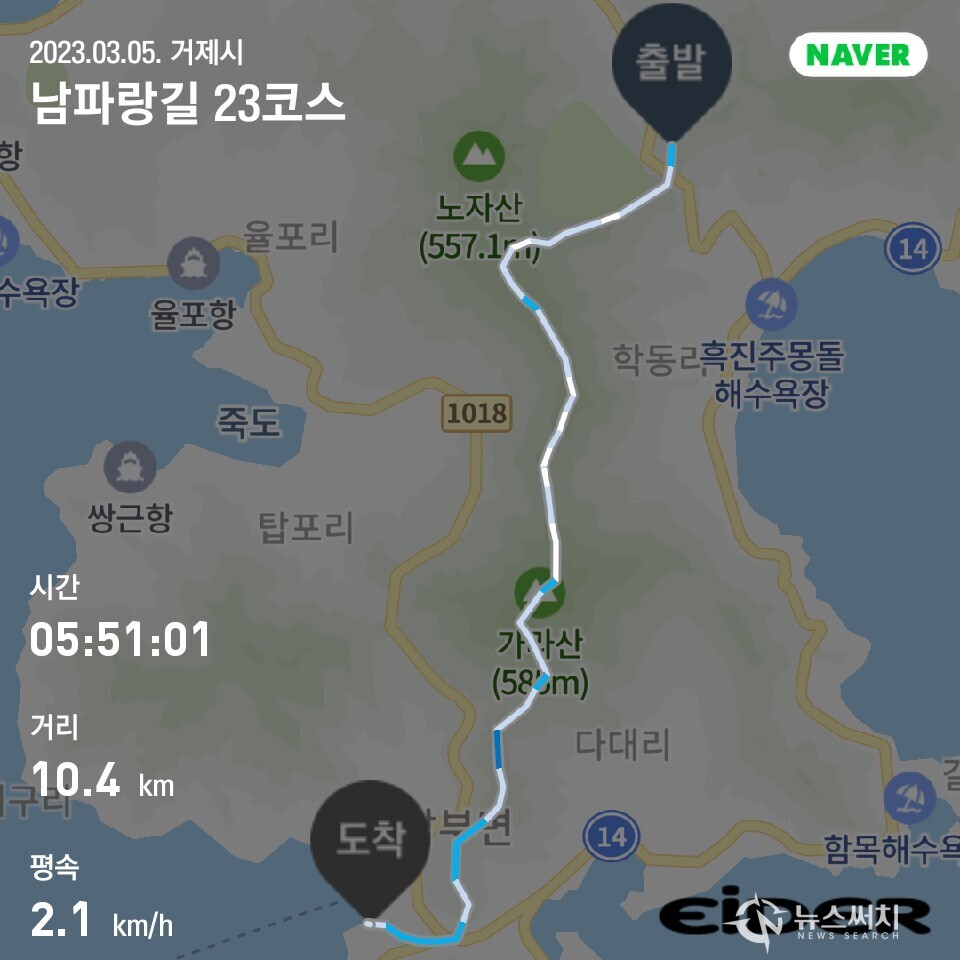 남파랑길 거제구간 23코스 트레킹 코스 및 기록