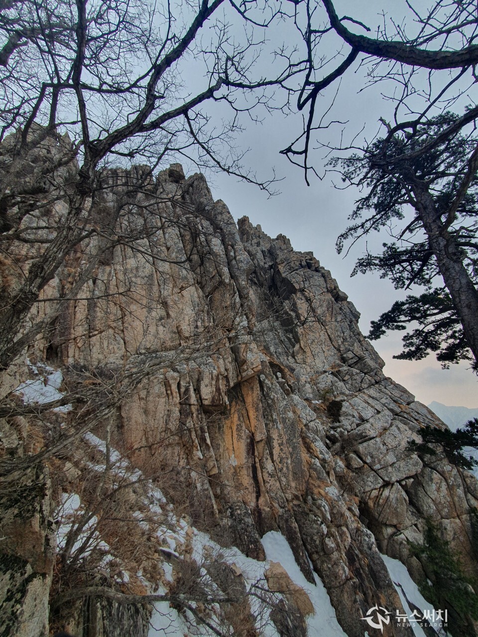 눈이 남아있는 설악산 능선들. 3월의 설악산은 겨울 산이다. 지난 3월 1일 설악산 능선들, 특히 공룡능선에는 아직 눈이 많이 남아있어 바위와 나무, 눈이 섞인 풍광을 내뿜고 있었다.
