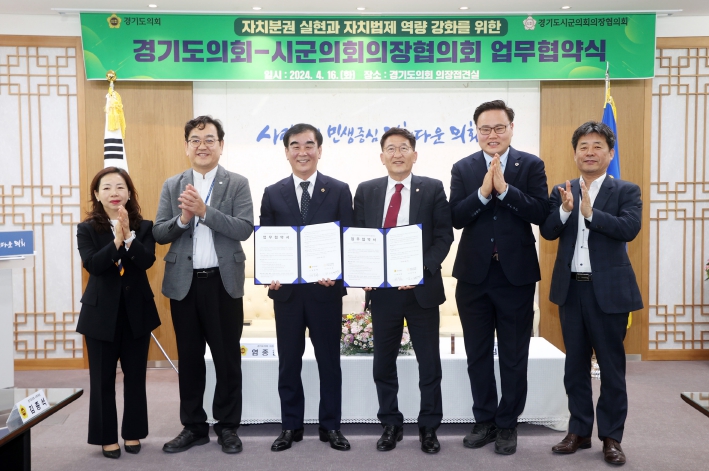 이번 협약식은 경기도의회와 경기도시군의회의장협의회 간 법제분야 네트워크 구축 등 상호협력 업무협약 체결을 통해 실질적 지방분권을 실현하고 자치법제 역량을 강화하고자 추진됐다 .