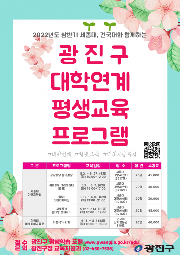 신청은 광진구 평생학습 포털을 통해 접수할 수 있다.