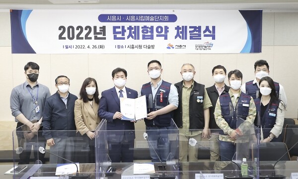 시는 지난 26일 전국공공운수사회서비스노동조합 경기문화예술지부 시흥시립예술단지회와 근무시간 연장 및 4대보험 가입, 시립예술단의 상임화를 주요 내용으로 하는 단체협약을 체결했다.