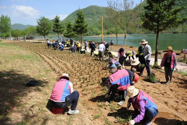 가평군농업인단체협의회는 26일 클린농업대학 총문회는 27일 자라섬 남도에서 탄소중립 실천 결의대회를 가지고 남도 꽃정원에 꽃묘를 심었다.