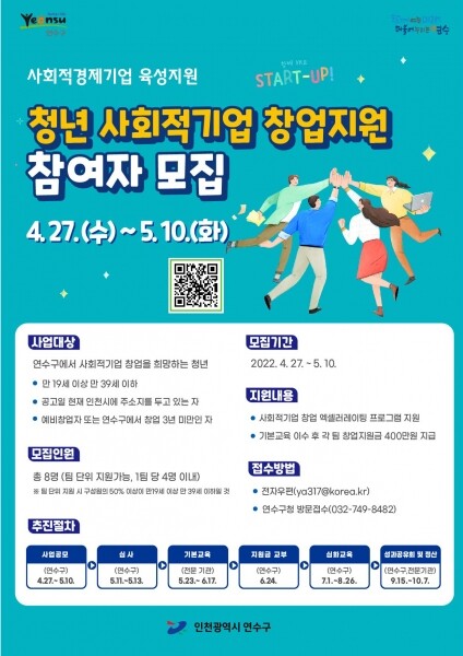 ‘청년 사회적기업 창업지원’은 8팀을 모집하며 인천시에 거주하고 사회적경제기업 창업에 관심이 있는 만 19세~39세 미만의 예비창업자 또는 창업 1년 미만 사업자라면 누구나 참여 가능하다.